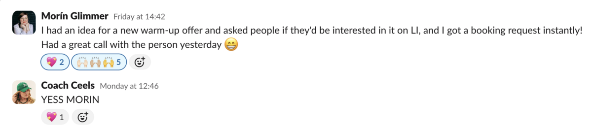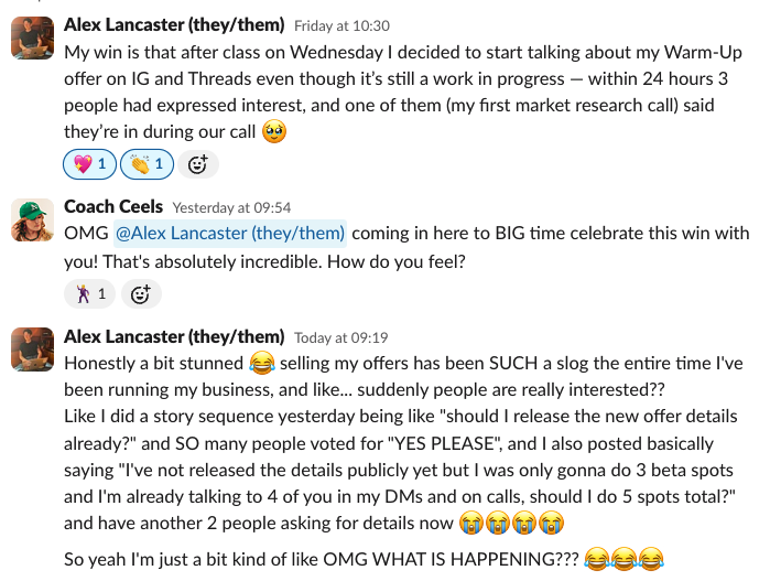 "They really made me think about both the way I talk about my offer and how I position myself generally."
