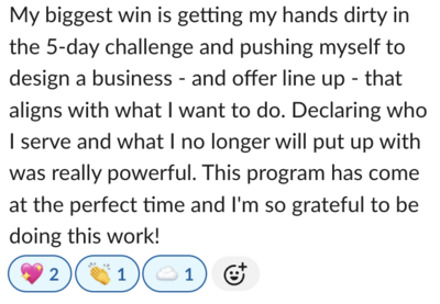 "I have fully stepped into my expertise. I own it, confidently, and it shows in how fulfilling my work is, how aligned my clients are becoming and how much fucking fun it is to sell my offers.
