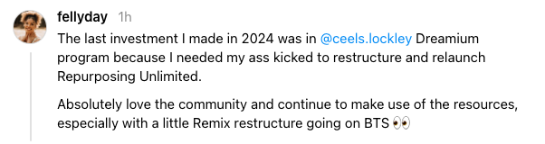 "Honestly Dreamium is one of the best investments I’ve ever made as an agency owner. Not only was I FINALLY able to get my After Party offer to a place where I can sell it, but now I’m rebranding my podcast, have a whole ass brand theme AND am getting great direction on my Headliner Offer. This is the program for DFY pros who don’t want offers that cannibalise each other."