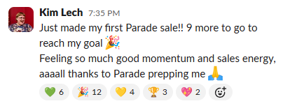 Parade is designed to help you build your confidence to sell over the course of the sprint duration. I've created a host of mindset prompts and hacks to help you through it, plus I'll be on hand during our live sprint for coaching in Slack!
